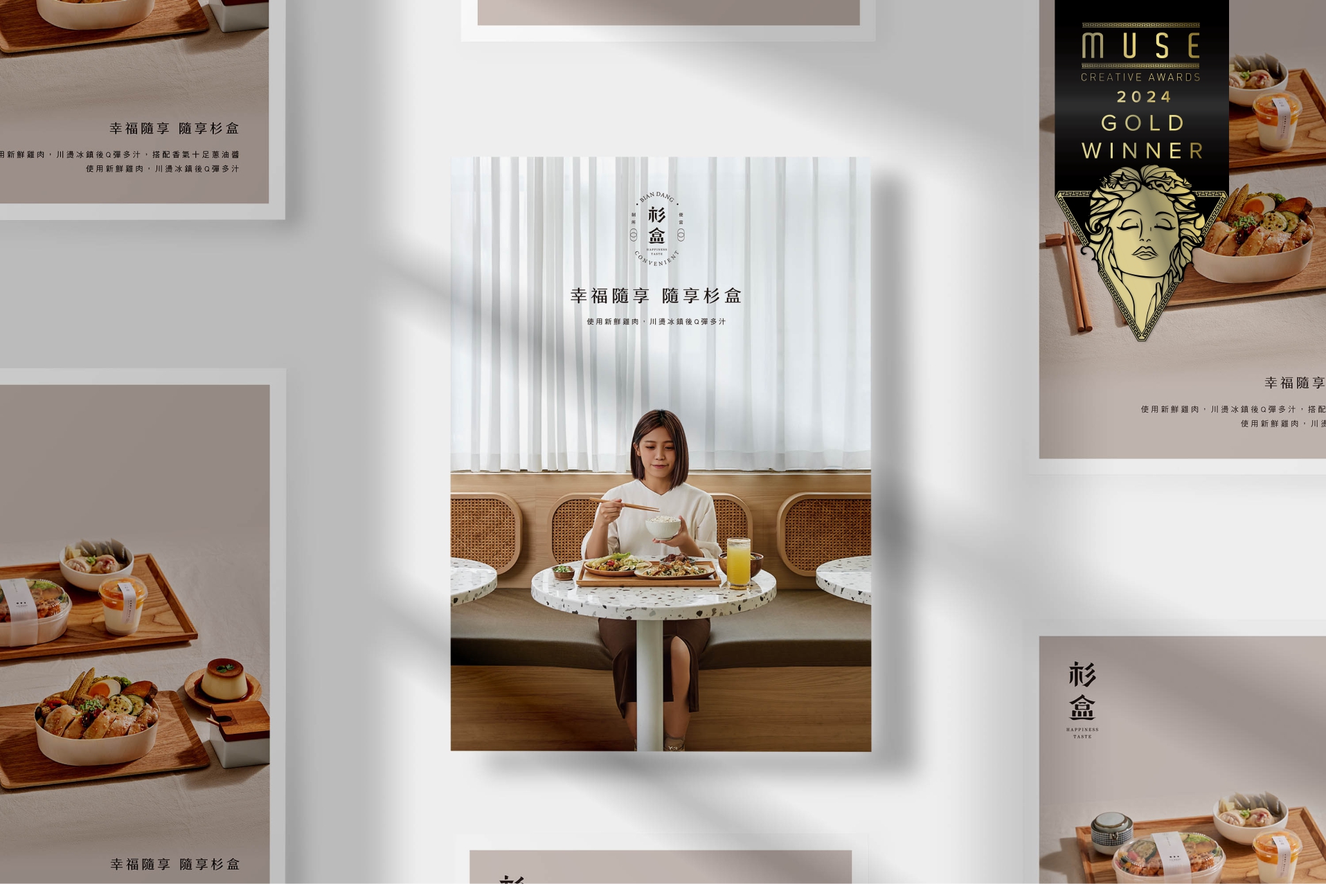 「杉盒」便當製所,不僅僅是快餐,而是一份充滿溫度的日常陪伴, 將每一餐都變成幸福的時刻。透過品牌設計, 我們傳達的是一種隨時隨地的幸福感, 將「便當」這個日常選項升華為一種生活哲學——簡單卻充滿細節的美好。 以「杉」為名,我們取其象徵的自然、清新與恆久, 傳達出品牌對品質與健康的承諾。我們相信每一口便當不僅是飽腹, 更是對忙碌生活的片刻停歇與犒賞,讓食物成為撫慰心靈的橋樑。通過精緻的包裝設計, 我們將這份哲學具象化——簡約、自然的外觀設計,配合流暢的線條與雅緻的色彩, 讓每一個便當都如同手工藝品般精緻,傳遞出對細節的關注與對顧客的關懷。 「幸福隨享,隨享杉盒」的品牌精神不僅僅是一句口號, 而是一種生活態度——無論在辦公桌前、戶外野餐,還是在家中的餐桌上, 都可以隨時隨地享受來自「杉盒」的溫暖與滿足。我們希望,透過這樣的設計, 將幸福與美好帶入每個人的生活中,讓每一餐都能喚醒人們心中最純粹的快樂。 這樣的品牌理念將「杉盒」塑造成一個不僅注重便當品質, 更關注人與生活情感連結的品牌,在競爭激烈的市場中獨具一格。