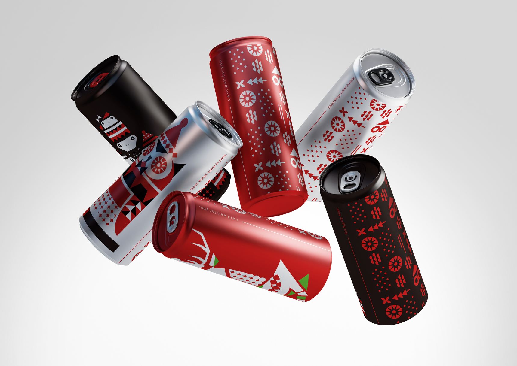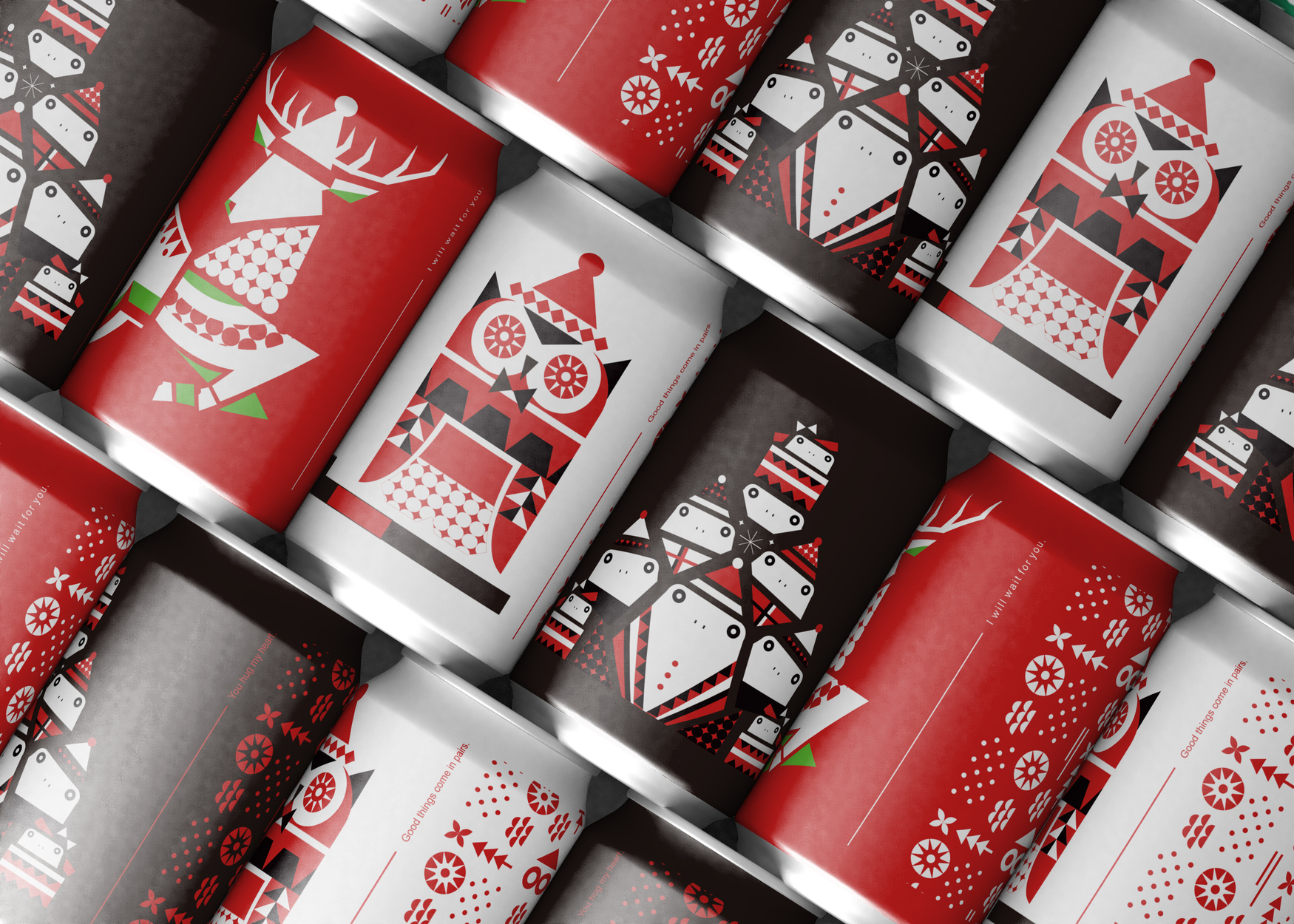 The key focus of this Christmas collaboration design is not to simply place festive elements onto the packaging, but to transform symbolic characters—such as the white deer, owl, and nine frogs—into a geometric visual language. By reconstructing these figures through geometric forms and repeated patterns, the composition achieves stronger cohesion and rhythm, while maintaining the brand’s consistent sense of rationality and visual order.